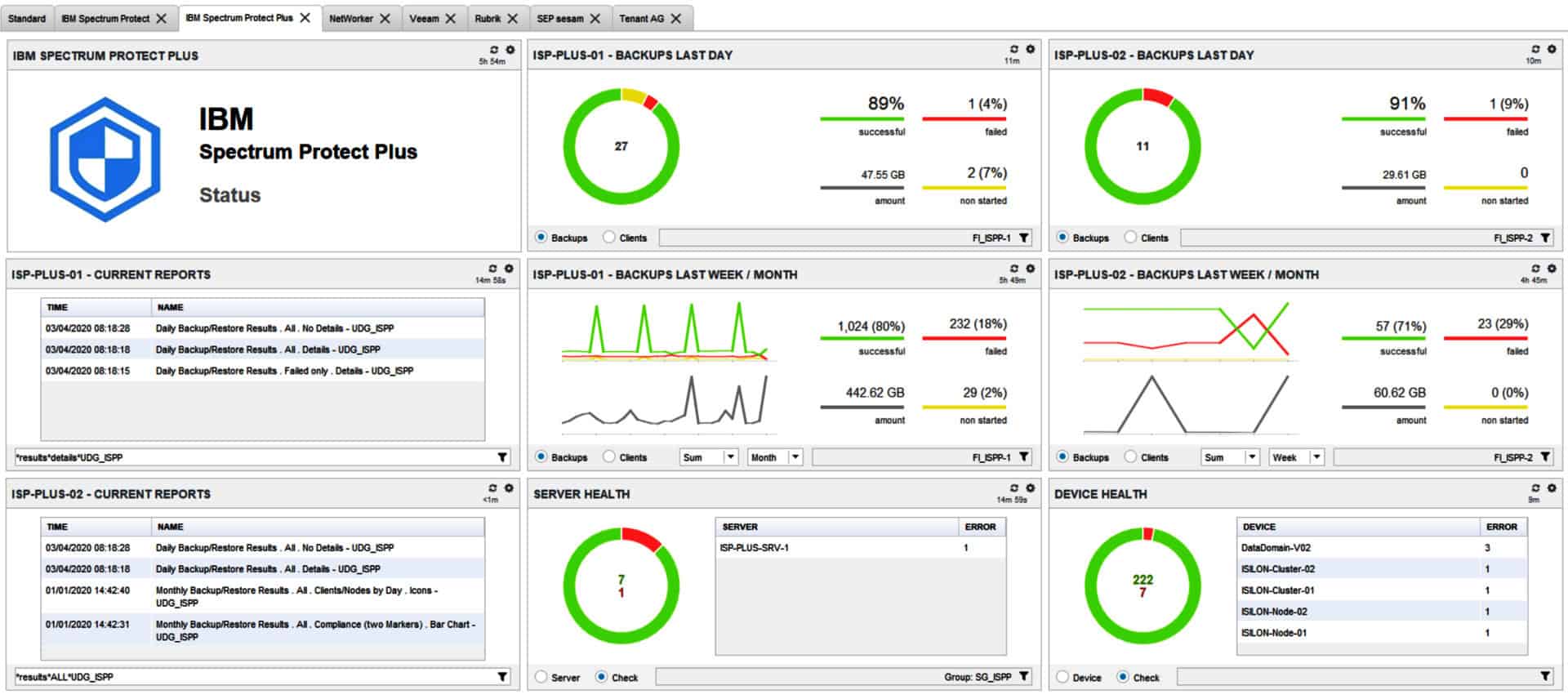 BACKUP EAGLE® dashboards provides a quick view of your backup environment. The dashboard elements can be individually configured in terms of content and arrangement. It is also possible to split or extend the dashboard to more than one dashboard (e.g. one dashboard per client / topic / department).