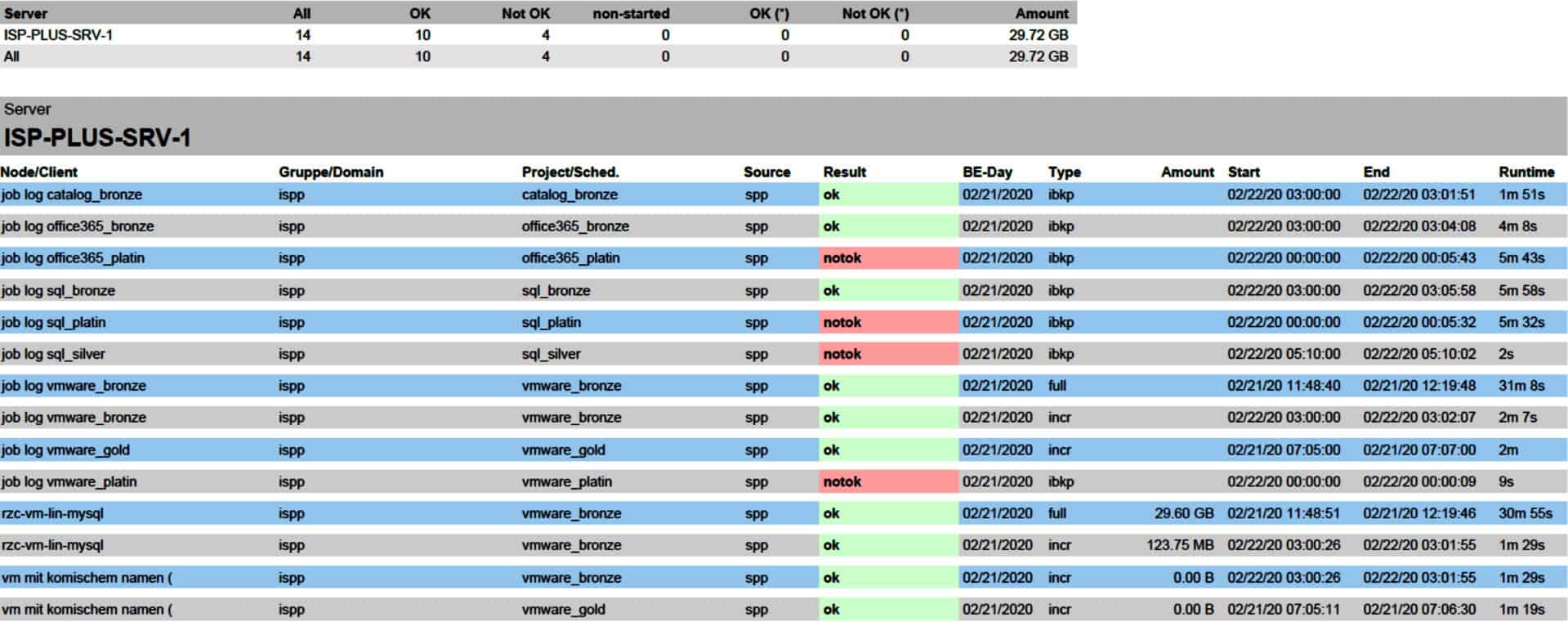 BACKUP EAGLE® Backup Reporting for IBM Storage Protect Plus includes all evidence of your backup jobs and configuration changes as well as reports and evaluations of your IBM Storage Protect Plus environment.