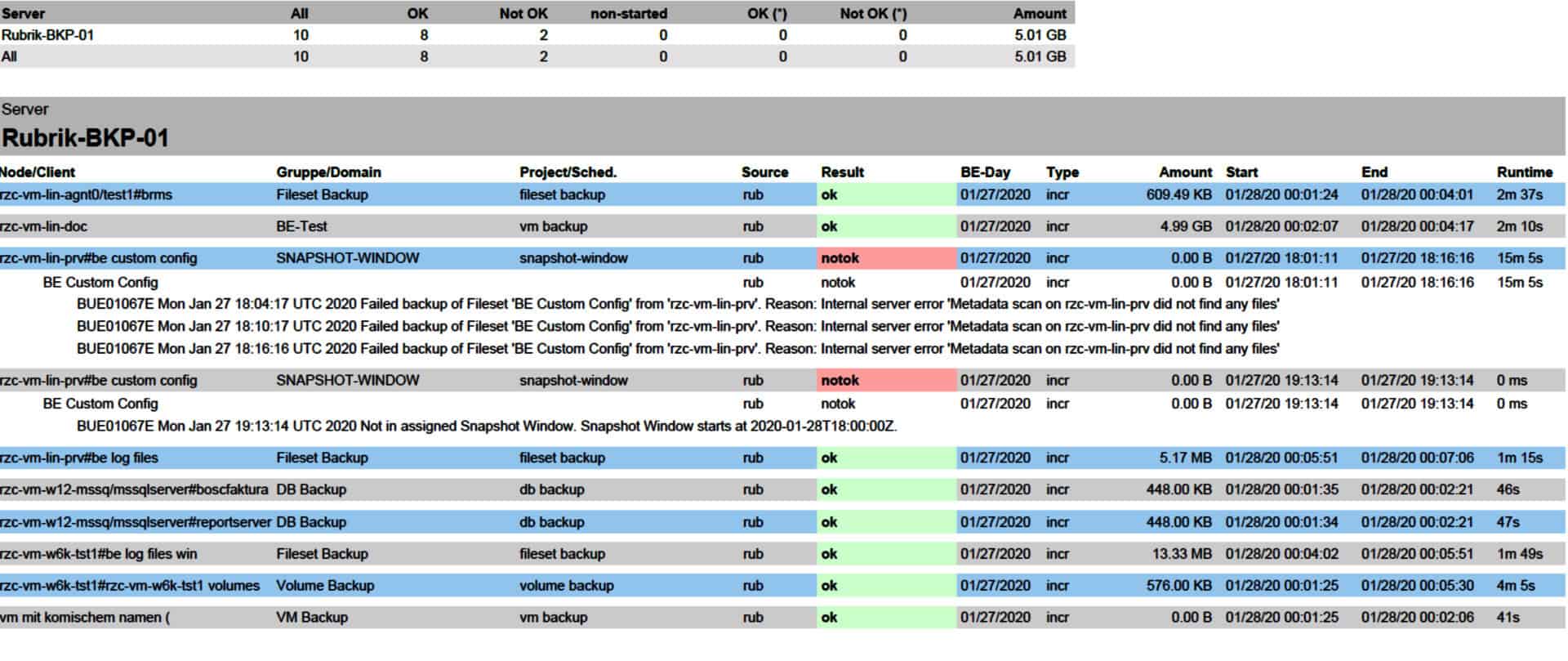 BACKUP EAGLE® Backup Reporting for Rubrik includes all evidence of your backup jobs and configuration changes as well as reports and evaluations of your Rubrik environment.