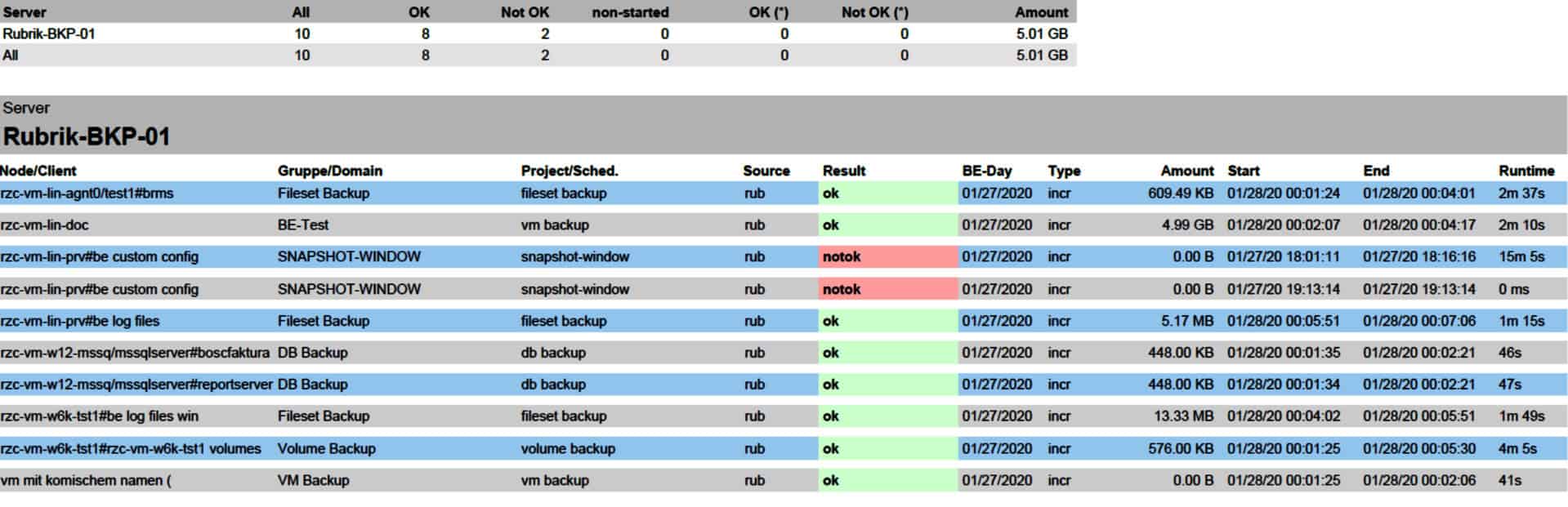 - Comprehensive monitoring via several backup software tools (e.g. Rubrik and IBM Spectrum Protect) is possible.